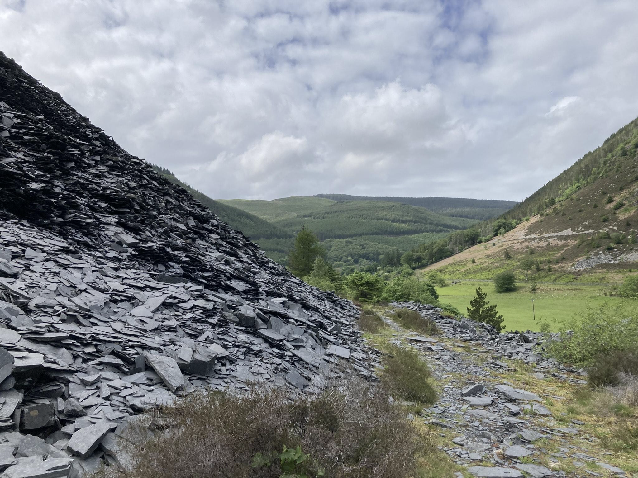 Wales ima razkopano telo. Kar naj bi bilo spodaj, raste kot hrib. Plasti, stisnjene v kamnine, so naložene kot kupi perila ali pa razsute kot tovor. Notranjščina, obrnjena navzven. Ekstrakcija, rečem. Včasih je treba uporabiti tujko, jo izvleči iz tujega jezika, tujke so navadno ostre, izrežejo, ne gladijo. Tujke so analitične, ne toži se jim za izgubljenimi imeni. Skrilavec se cedi iz notranjščine. Kaj je notri, ko je vse zunaj? Včasih smo se tu igrali, reče. Hodimo in pod nogami skrilavec nenavadno poklja, kot bi hodili po črepinjah. Gledamo krajino, ki ima razkopano telo. Vse tri molčimo. Morda skozi kupe sive kamnine vidita lastni otroški smeh. Morda se zdijo razsuti sedimenti žalostni le mojim očem.