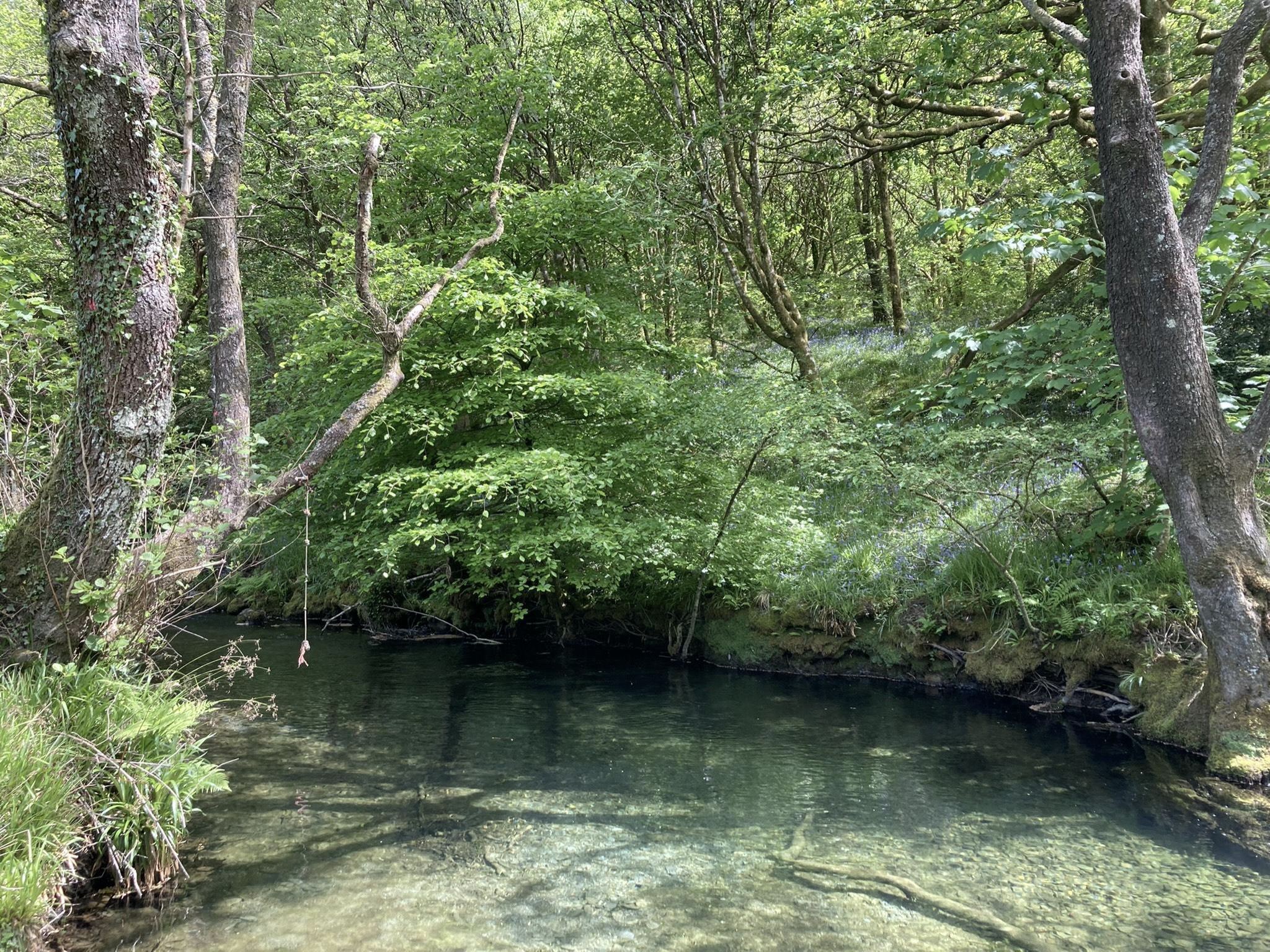 V Walesu vidim plasti, površja, sedimente. Vidim pa tudi punco, ki je srečna in ob tem rahlo presenečena. Prva zaplava v hladno reko. Slediva ji, psi počakajo na obrežju. Ob reki je siv, kamnit most. Zelenje je temno, bujno. Rada bi našla besedo na križišču med skrivnostno, resno, podeželsko, lepo, polno, robide, zajci. Take besede ni. Pomislim, da bi jo rada imela bližje in hodila plavat z njo. Ko odhajam, mi podari svojo knjigo. Na naslovnici stopa v vodo. Listam jo, gledam besede, niti ene ne prepoznam. Plasti pod njimi plavajo.