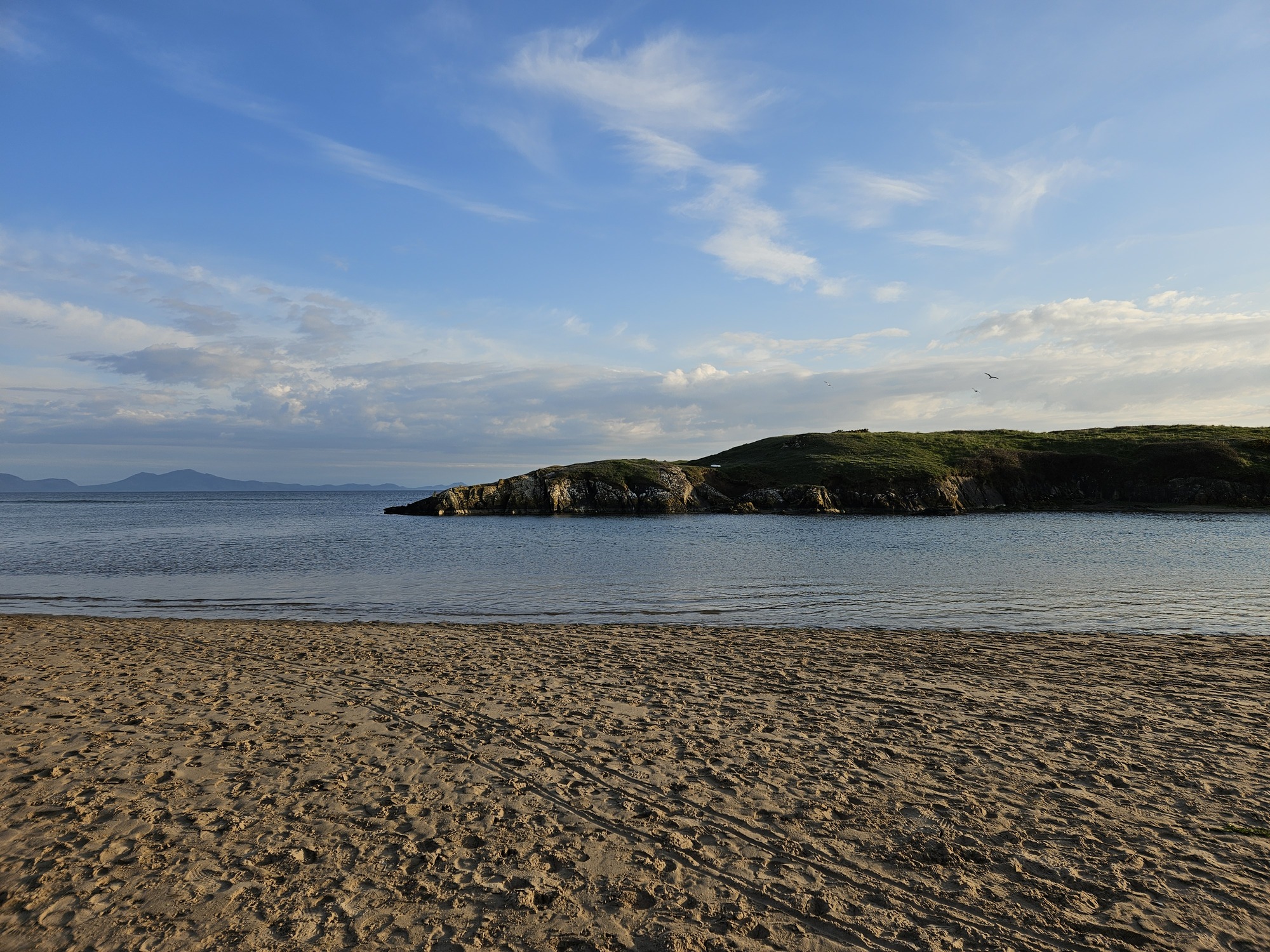 I'm sitting on a bench, looking at the rocks exposed by the tide. Two seagulls walk among them, resembling an old married couple. They walk together, he a step ahead, she trotting behind him. They whistle repetitively, he once hoarsely, she twice thinly, over and over. The flag flutters on the highest tower of Caernarfon Castle. It bears a red dragon on a green and white field. The red dragon fascinates me, I envy the Welsh for having such a flag. In Caernarfon, dragons are everywhere. Green Wales, the land of fairy tales and myths, stories of Mabinogi, of King Arthur and the Knights of the Round Table.